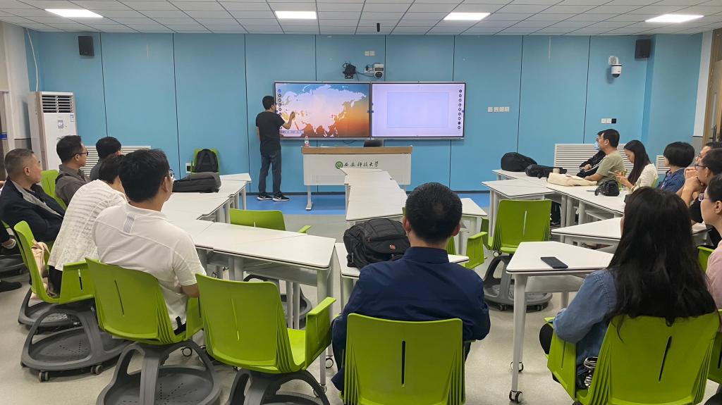為了提高新學(xué)期現(xiàn)代信息技術(shù)在課堂教學(xué)中的應(yīng)用水平,8月26日下午,教務(wù)處在驪山校園開展了研討型智慧教室賦能課堂教學(xué)培訓(xùn),嘉課堂工程師就驪山校園3號(hào)教學(xué)樓研討型智慧教室的使用和翻轉(zhuǎn)課堂的開展進(jìn)行了專題輔導(dǎo),對(duì)教室使用的課前(教室的燈光、窗簾、空調(diào)、大屏、錄播、擴(kuò)聲、講臺(tái)等設(shè)備控制、使用方法,尤其是大屏如何使用);課中(通過真實(shí)課件ppt,介紹嘉課堂互動(dòng)教學(xué)軟件,講授模式與研討模式);課后(下課、設(shè)備關(guān)閉及注意事項(xiàng))進(jìn)行了詳細(xì)說明。講解完成后對(duì)參會(huì)教師提出的問題進(jìn)行了一一解答。