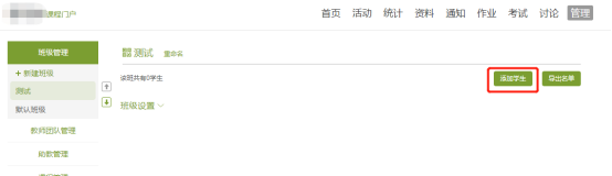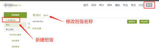 1)電腦登陸后進入課程,依次點擊管理,創建班級,添加學生,學生庫添加或批量導入。