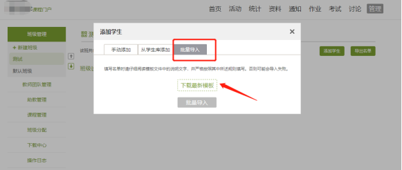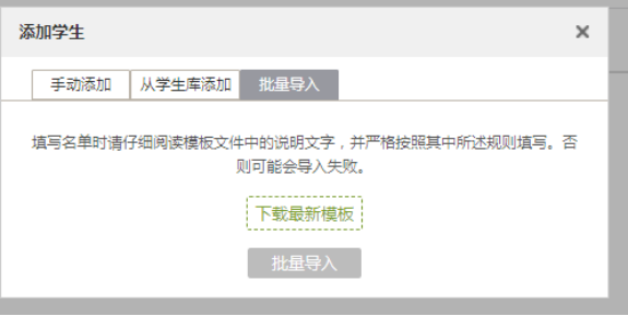 點擊添加學生--批量導入--下載最新模板表(按照模板要求導入即可)