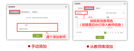 點擊添加教師之后,可以通過“手動添加”和“從教師庫添加”兩種方式來添加。