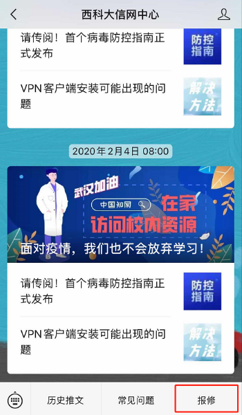 3)微信關注xustNIC選擇報修,填寫相關信息。