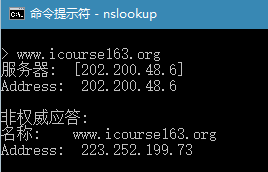 nslookup命令,測試本機DNS服務器配置及解析配置是否正確。命令格式為nslookup,回車輸入網址,回車。