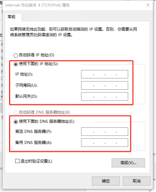 2) 配置方式:在電腦(直連入戶網線)或路由器中配置正確IP地址、子網掩碼、網關、DNS等信息。