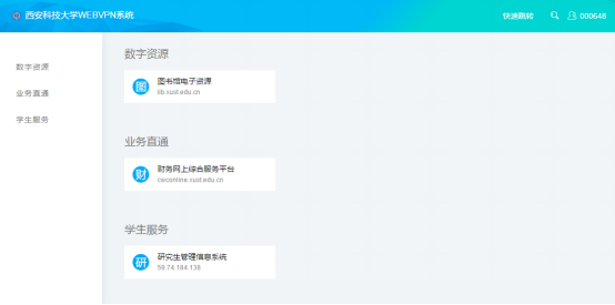 如需訪問校內其他內網資源服務,可通過“快速跳轉”按鈕輸入相關地址進行訪問。
